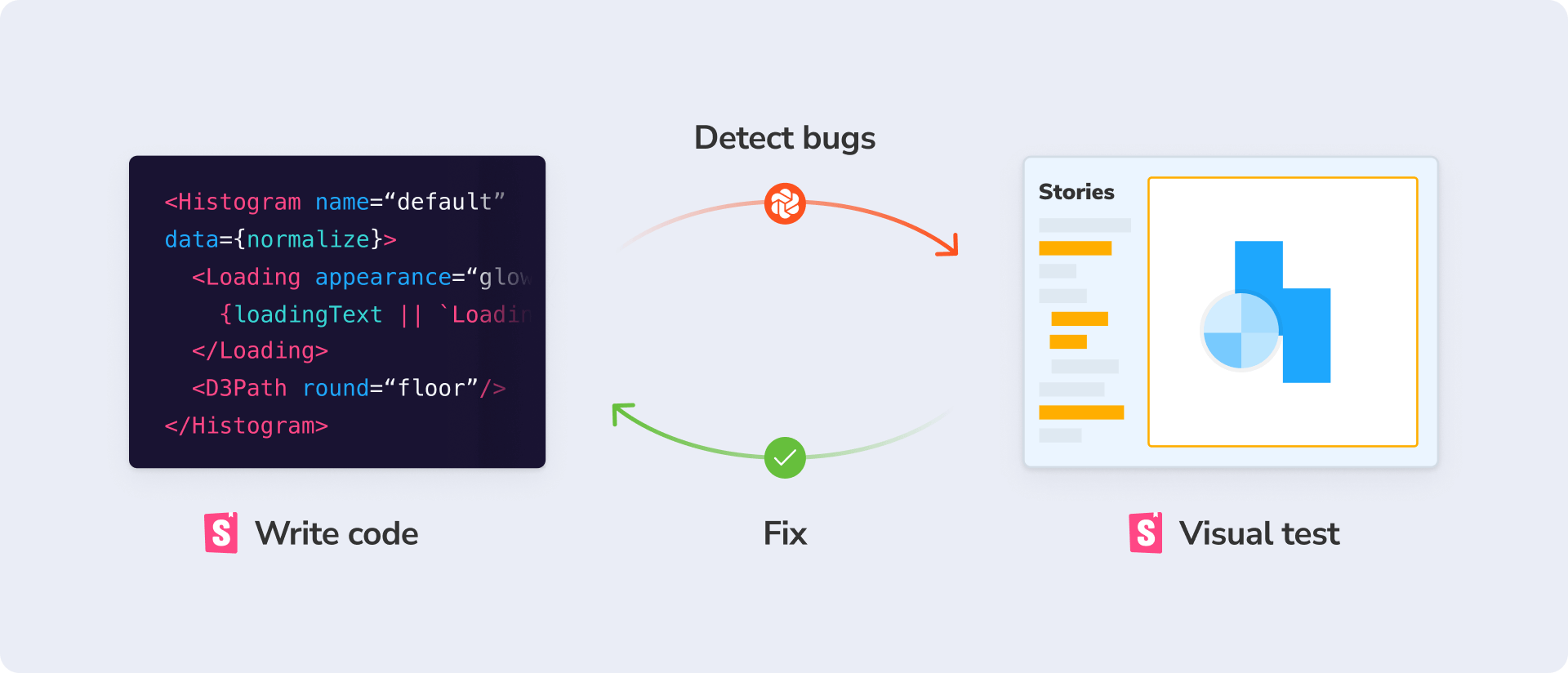 - The entire visual testing process is available when you need it the most: inside your component workshop