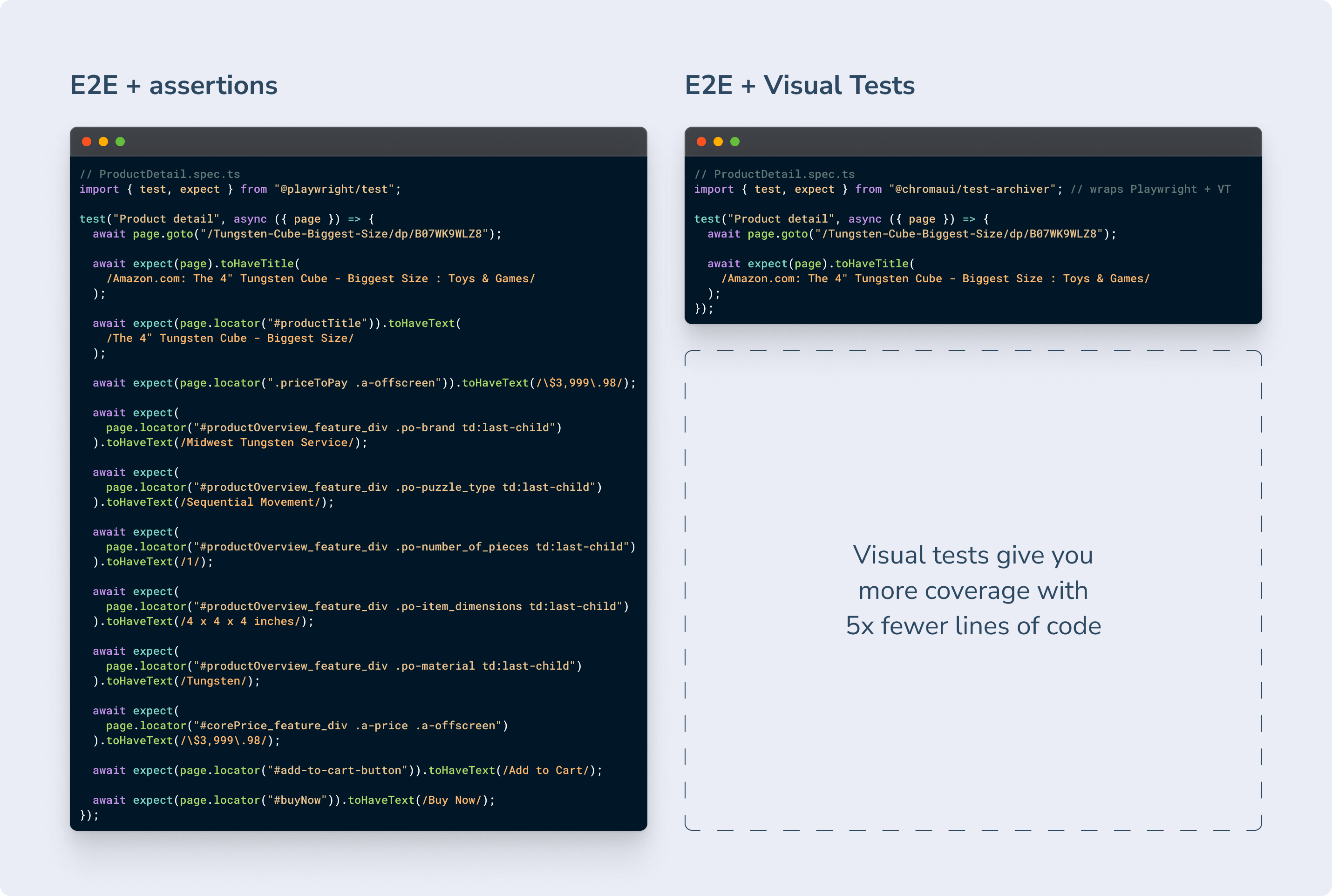 Now multiply this out across your entire application, which might contain hundreds of components of various complexities. As you scale up, visual tests are significantly easier to write, read, and maintain!